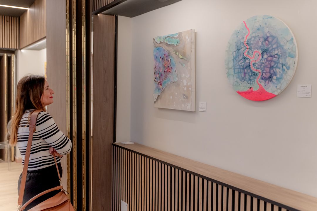 José María nos presenta aquí una muestra que aúna con bastante acierto lo que han sido años de experimentación artística y, cómo no, vital. Se basa en recuerdos de ciudades y utiliza texturas como arena, tejidos e hilos de costura para crear obras que no solo son visualmente impactantes, sino que también invitan al espectador a sumergirse en la experiencia sensorial y emocional de la vida de ciudades infinitas.