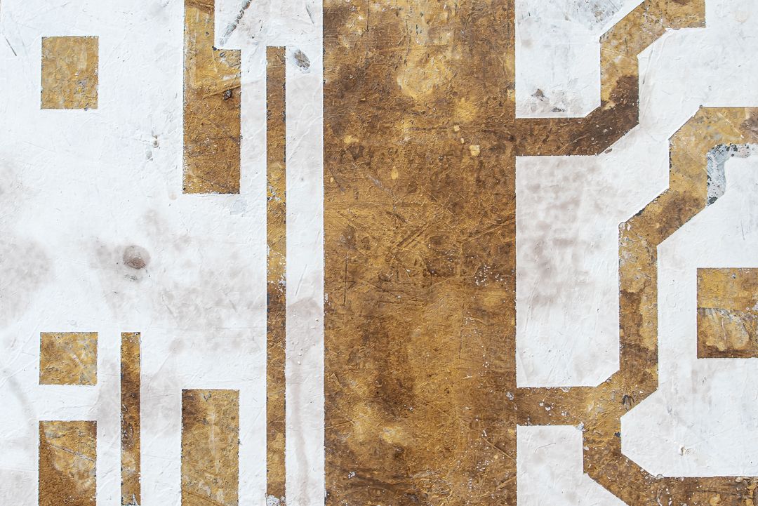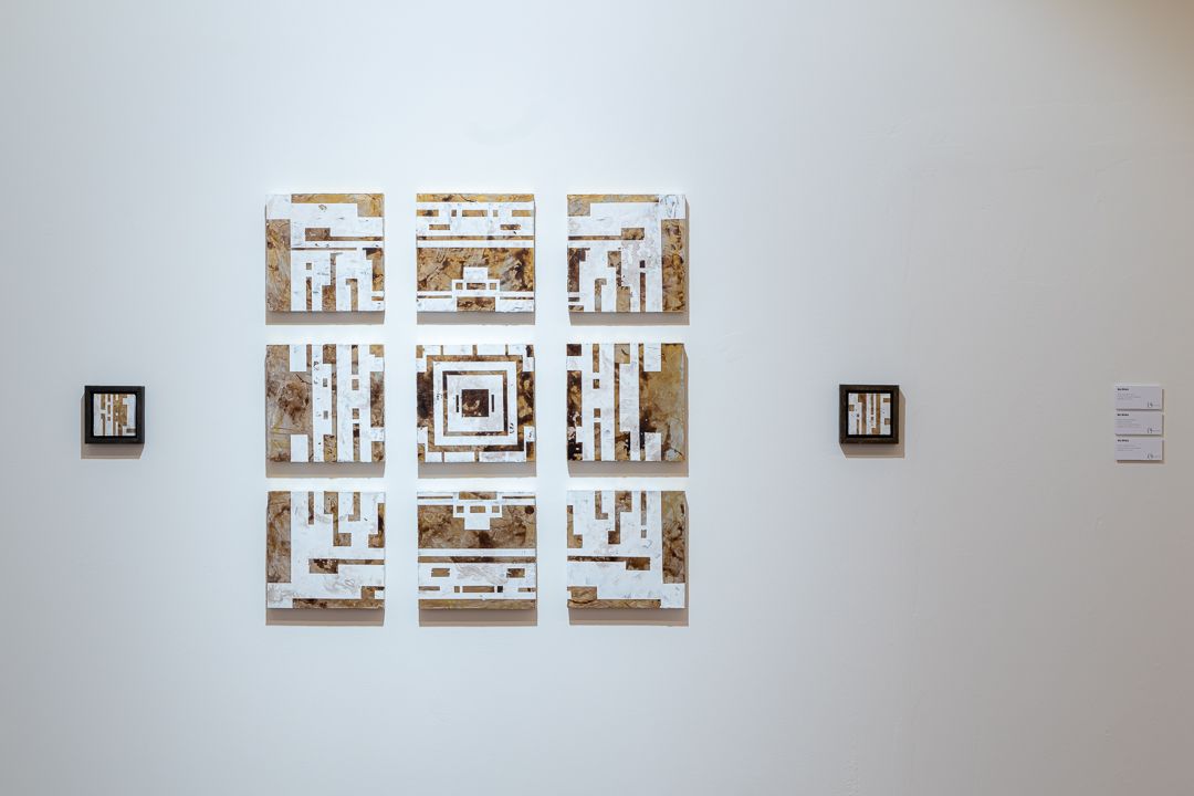 En palabras de la propia artista “Se trata de una revisión de mi pintura desde el 2013 al 2023. Una parada, un alto en el camino para seguir avanzando. Entramos en la sala, a un lado un mosaico de circuitos (2023), al otro un muro (2013). Tras las primeras columnas nos encontramos dos lienzos de mayor tamaño, nunca antes expuestos (2018) que hacen referencia a mi obra Marionetas y sus pizarras verticales repletas de información emborronada, a ambos lados dos circuitos las sostienen (2023). Avanzamos tras las siguientes columnas y allí encontramos dos dípticos enfrentados que serían el preludio y la transición de las pizarras y muros a los circuitos (2016)”.