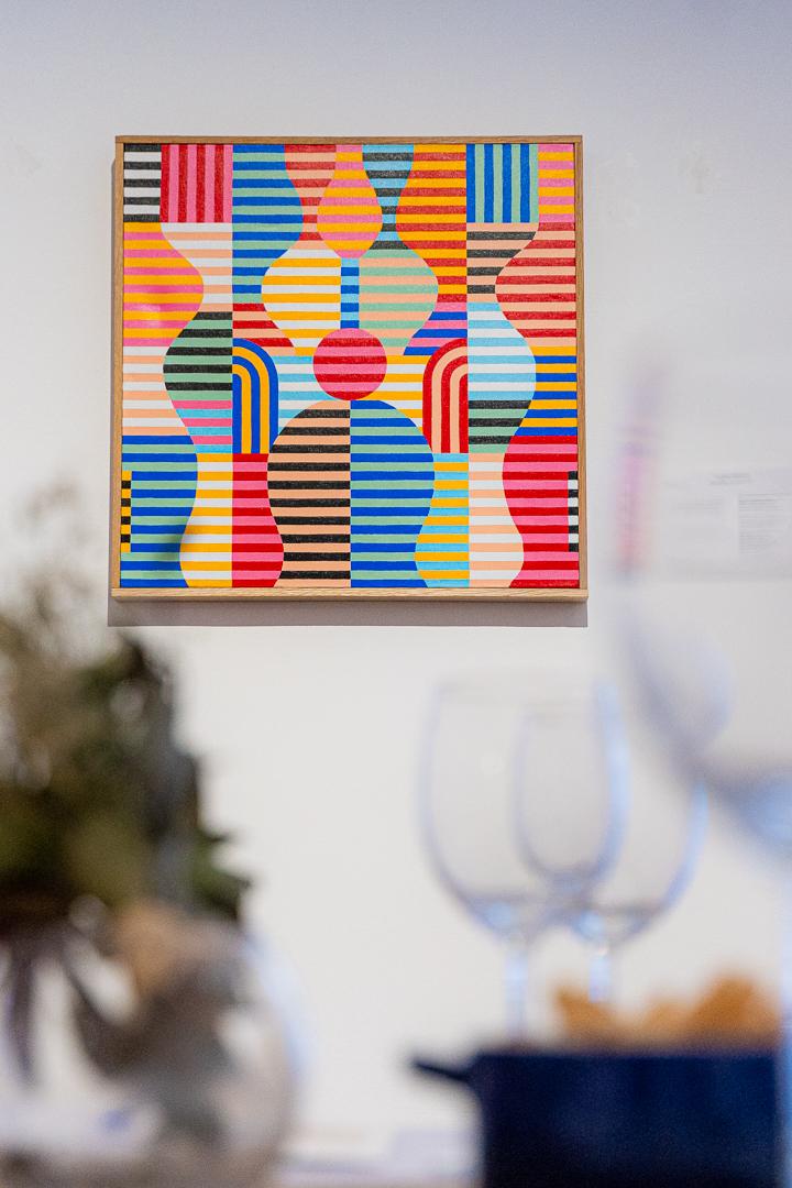 El tinto orgánico de Orsati Crianza y los trazos presentes en la obra de la Artista Marta González dialogaron de maravilla.