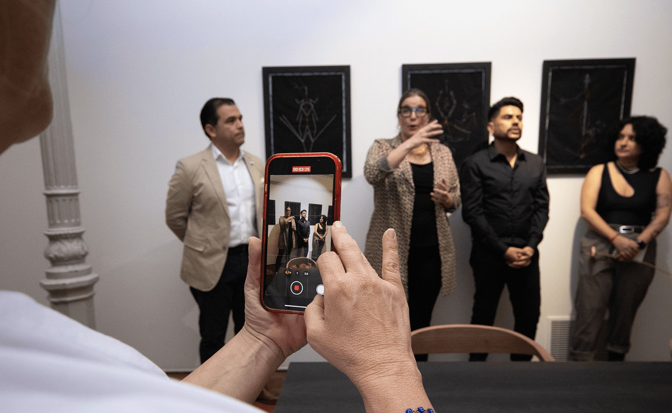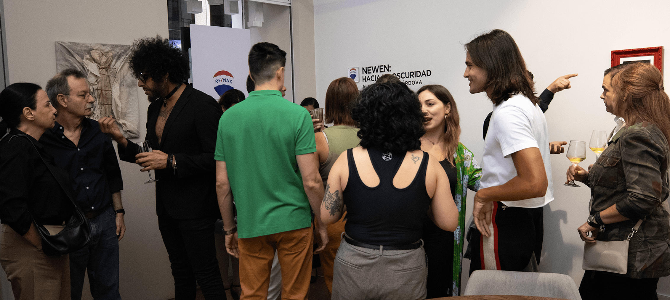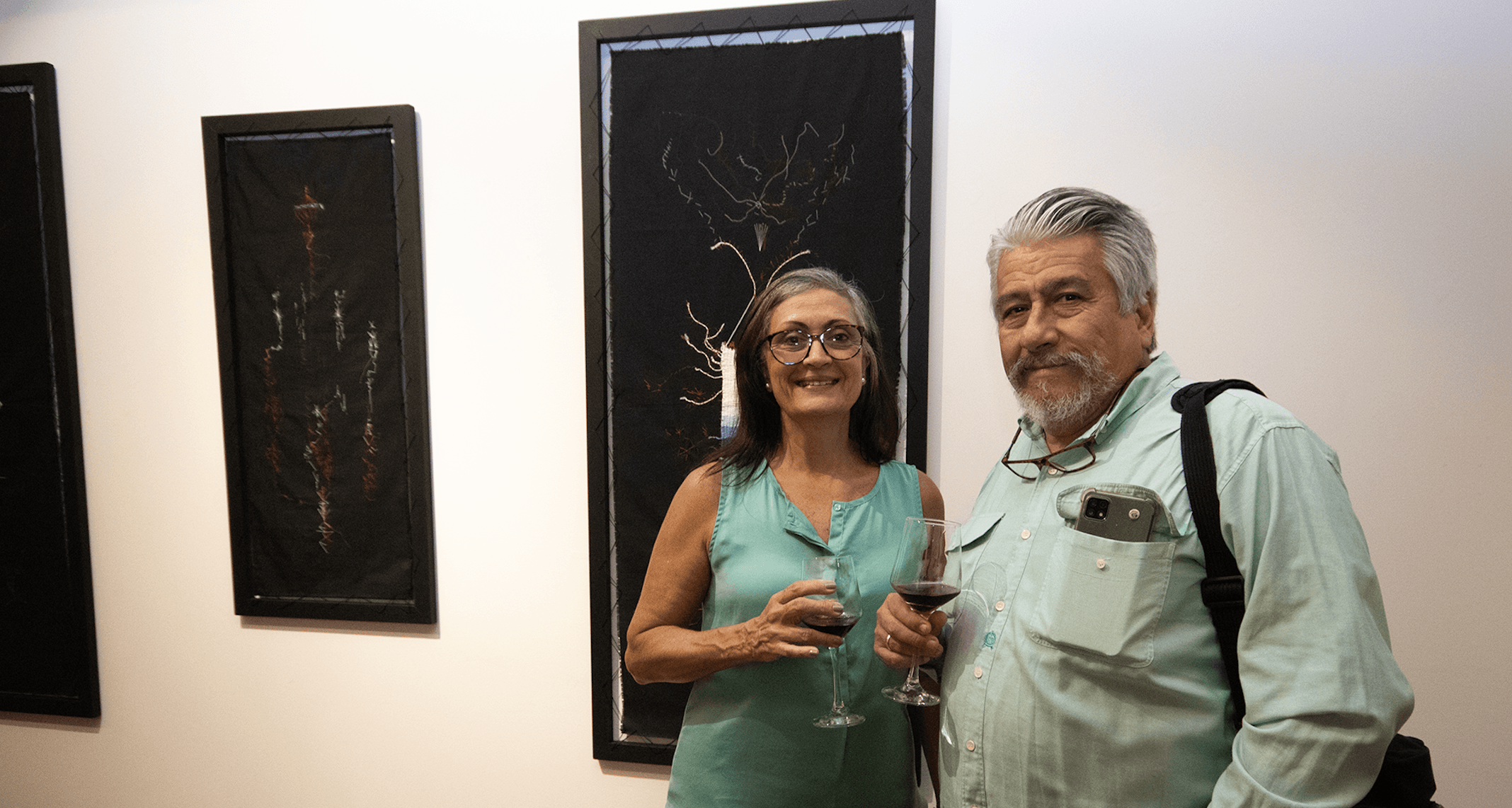 El Artista Álvaro Aroca Córdova hizo una motivadora presentación de su obra, explicando el camino recorrido para llegar a una ejecución profunda. Lo acompañó la Comisaria Judith Corro, quien explicó su compenetración y entendimiento de Newen: Hacia la oscuridad.