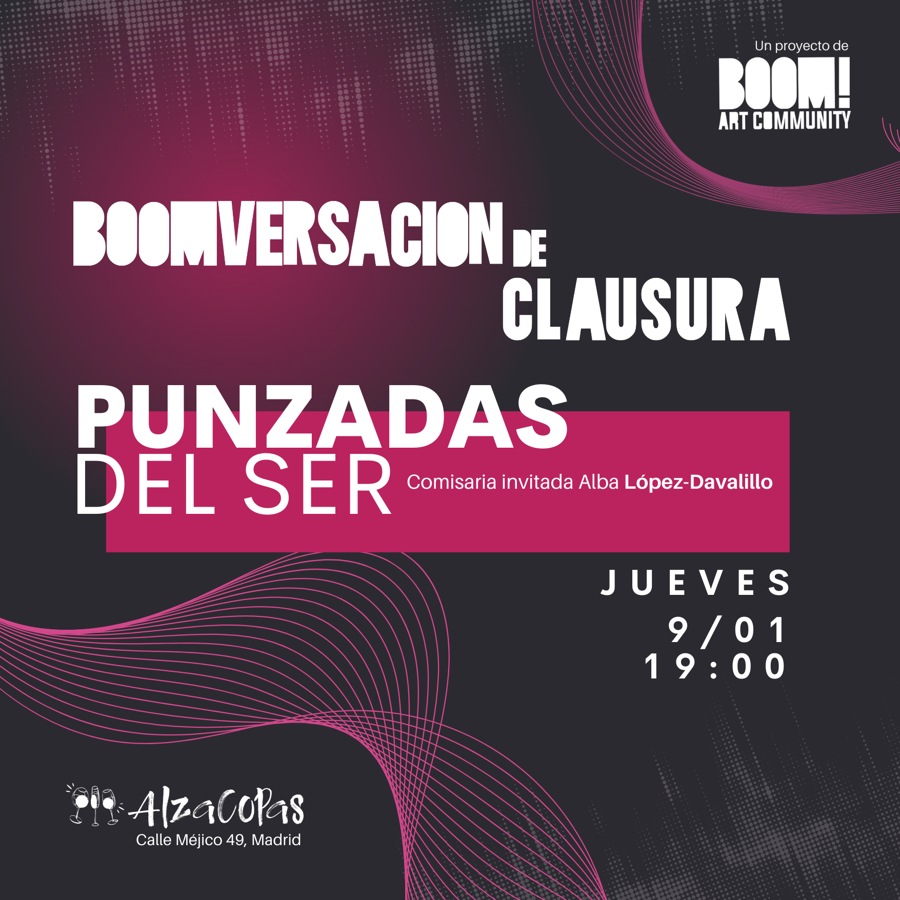 “Punzadas del ser” se trata de una muestra colectiva que reúne la obra de ocho artistas seleccionados a través de la convocatoria “Clausura de año”, entre los que se encuentran Melina Aiello, Genaro Bastardo, Manuel Cuevas, Rou Díaz Acosta, María José Fernández González, Margarita Lozano Guerrero, Jesús Salazar Cabrera y Benito Luisa. Cada uno de ellos presenta una visión única y profunda que, aunque diversa en técnica y enfoque, se unen en un mismo propósito: provocar en el espectador una experiencia íntima y significativa, haciendo de la obra un espacio habitable.