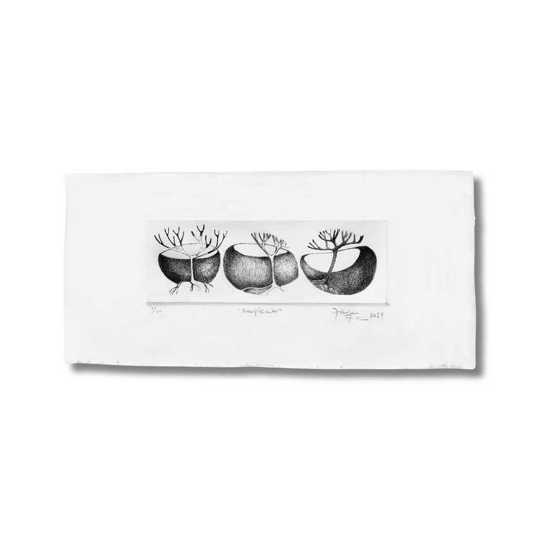 🖋️ “Las huellas de esta exposición se revelan a través de las técnicas: litografía, aguafuerte, punta seca, serigrafía, linograbado, estampación y ensayo algorítmico. Todas ellas simbolizan la espera, la confianza en el proceso y la necesidad de seguir un método: dejan marca, se estampan, se revelan y se rebelan ante la sociedad de la inmediatez.”