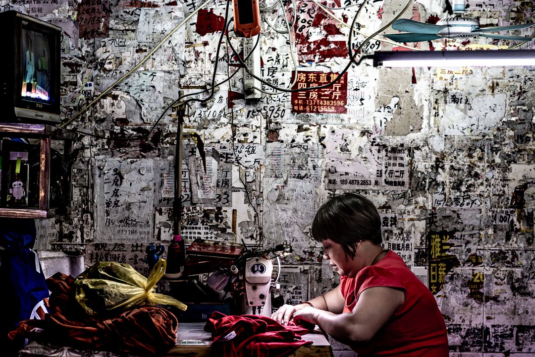 El ritmo frenético de la cultura del esfuerzo es otro de los lugares en los que Jesús pudo encontrar una especie de espejismo entre China y Venezuela. La clase trabajadora habitante en las calles urbanas de Shenzhen se transforma en la mente del artista en un recuerdo del trabajo duro de sus familiares.