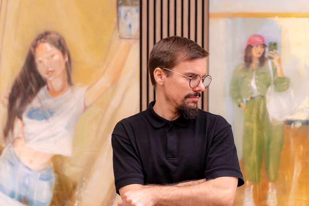 Chuli Herrera, implementando el método tradicional de pintura al óleo, captura la estética y aparente simpleza del «mirror selfie», trascendiendo la superficialidad para desvelar las capas ocultas del ser. Herrera explora el autorretrato digital, reinterpretando un gesto cotidiano y banalizado por las redes sociales a través del estilo clásico de la pintura. El espejo, siendo un objeto tan ordinario y común, se convierte en un limen hacia la reflexión profunda. Cada pincelada parece susurrar secretos sobre la identidad y la autoimagen, confrontando al espectador con su propia existencia reflejada. En sus obras, el óleo se funde con la luz y las figuras retratadas parecen cobrar vida, atrapadas en un instante que se eterniza en el lienzo. Cargados de textura y profundidad, sus trazos contrastan con la inmediatez y frivolidad de la foto digital, otorgando peso y permanencia a una imagen que, en su origen, es efímera. Los reflejos de los espejos, lejos de ser duplicados exactos de quienes somos, se transforman en una metáfora del yo fragmentado, oscilando en una dualidad de ser y parecer, de existir y ser reflejo en el contexto de nuestra sociedad actual.