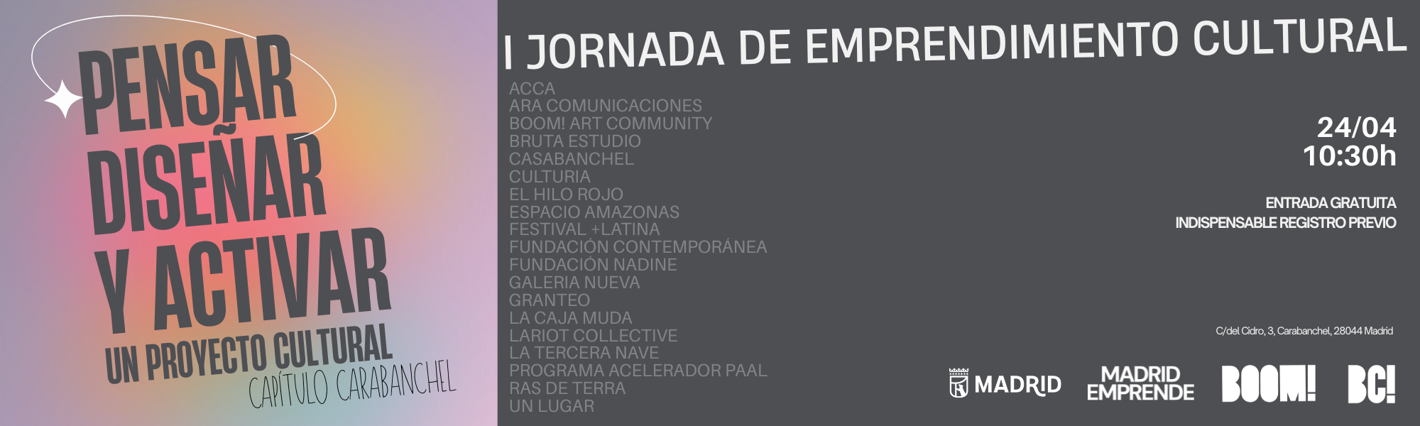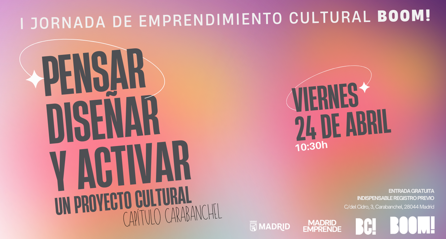 Llega la I Jornada de Emprendimiento Cultural, capítulo Carabanchel, de la mano de nuestro ecosistema cultural Boom! en alianza con el Vivero de Empresas de Carabanchel, de la Red Madrid Emprende.