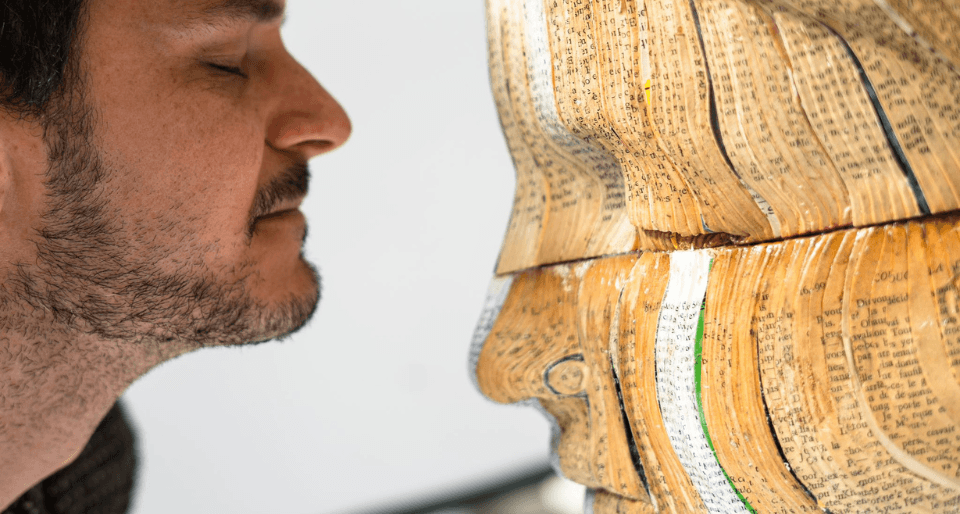 Como escultor, mi trabajo se centra en transformar libros descartados, aquellos cuya