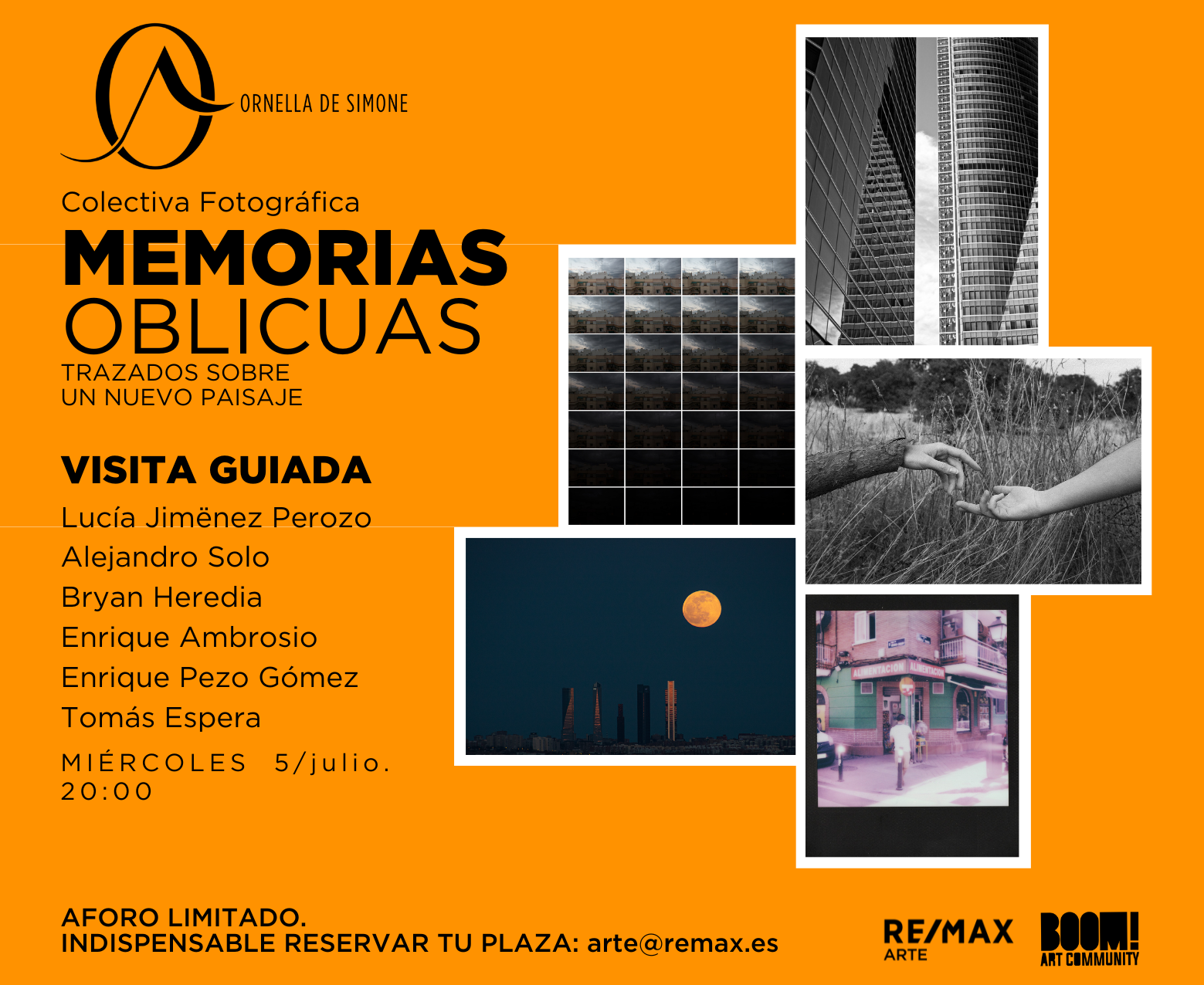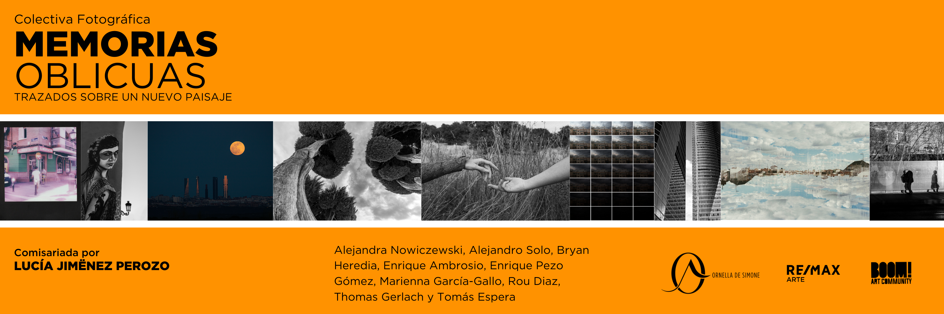 Hay algo curioso que nos ocurre al abandonar el lugar que habitamos y del que “somos”. Tras la decisión consciente de dejarlo todo atrás, en un momento, la vida se convierte en equipaje. Lo llevamos todo, y aún así, se queda un vacío. Ese paisaje del que “fuimos” es ahora el pasado; se transforma con el tiempo, que sigue adelante inclemente y nos despoja. Ante el desconcierto, intentamos encontrar en los nuevos lugares las líneas comunes de los paisajes que llamamos nuestros. Hacemos de lo extraño algo propio y cotidiano, rayando sobre lo que había allí donde “seremos”. Madrid ha sido siempre una ciudad destino. Constantemente bajo la mirada extraña, son pocos los espacios no fotografiados; aún así, nos sorprende. Cada recoveco, cada luz reflejada, cada sombra… La ciudad es por sí misma un paisaje infinito que se extiende en una vasta sinfonía de colores y geometrías. Pero vista por los ojos del viajero que ha abandonado su pasado, Madrid también es un escenario en el que se dilatan las nostalgias, los extrañamientos, los vacíos. Alejandra Nowiczewski, Alejandro Solo, Bryan Heredia, Enrique Ambrosio, Enrique Pezo Gómez, Marienna García-Gallo, Rou Diaz, Thomas Gerlach y Tomás Espera tienen en común ese escenario: Madrid. Un mapa desplegado a través de una mirada “descolocada” que busca sentido en los nuevos lugares tras hacer de estos espacios urbanos algo propio. En su cotidianidad, ellos han fotografiado la ciudad que habitan, pero sorprendidos –quizá sin conciencia de ello– por los no-lugares de su pasado. Esta Madrid diferente, reinterpretada, [re]trazada por cada uno de ellos. Memorias Oblicuas es una invitación a una ciudad dibujada más allá del paisaje, más allá de las geometrías y las geografías; moldeada a través de las conexiones inesperadas y de los juegos de la memoria que quiere hacer ver pequeños momentos del pasado en el ahora. Son instantes vividos en el eslabón de una cadena que cruza las líneas del tiempo que trazan los retratos de un paisaje pasado y presente. Los fotógrafos de esta muestra nos invitan a ver más allá de lo convencional, y a conectarnos con sus mundos internos a través de eso que les une [y que nos une] tras el viaje: un nuevo paisaje. Madrid, la ciudad de cielos azules, colorida, cosmopolita y sorprendentemente activa, pero también, curiosamente inhabitada. Cuando nos detenemos a contemplar estos neo paisajes, estamos ante un portal hacia esa dimensión omnipresente de lo que también ellos fueron. Una ciudad que se reconstruye con el tiempo y con el paso de cada uno de quienes le miran, narrando historias de cambio, adaptación y trascendencia. Lucía Jiménez Perozo. Comisaria.