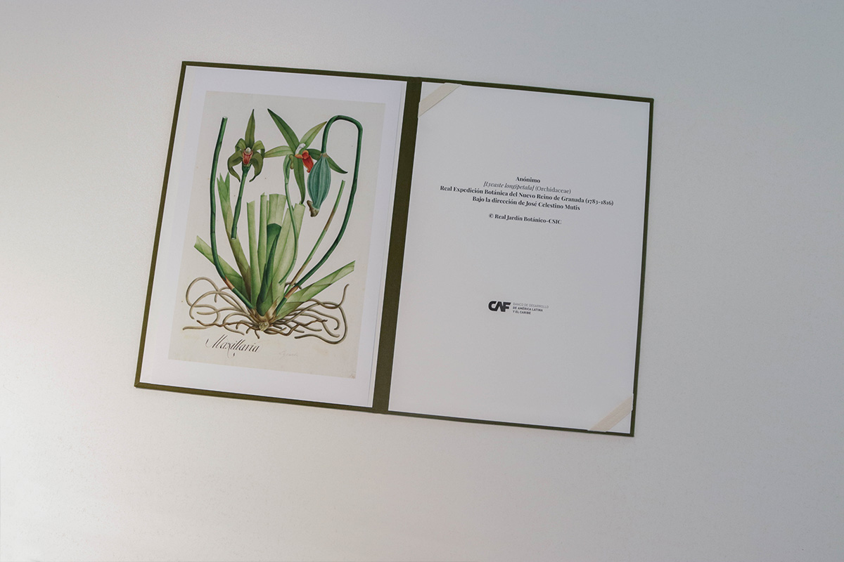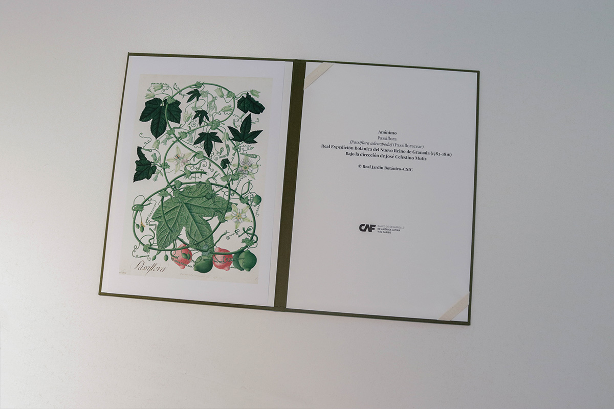 El conjunto resultante —papel, carpeta, contenido y contexto— da forma a un objeto editorial que representa los valores del programa: sensibilidad, sostenibilidad y cooperación. Un obsequio que recoge el legado ilustrado de Mutis y lo reinterpreta desde el presente como una invitación a seguir cultivando vínculos entre naturaleza, conocimiento y cultura.