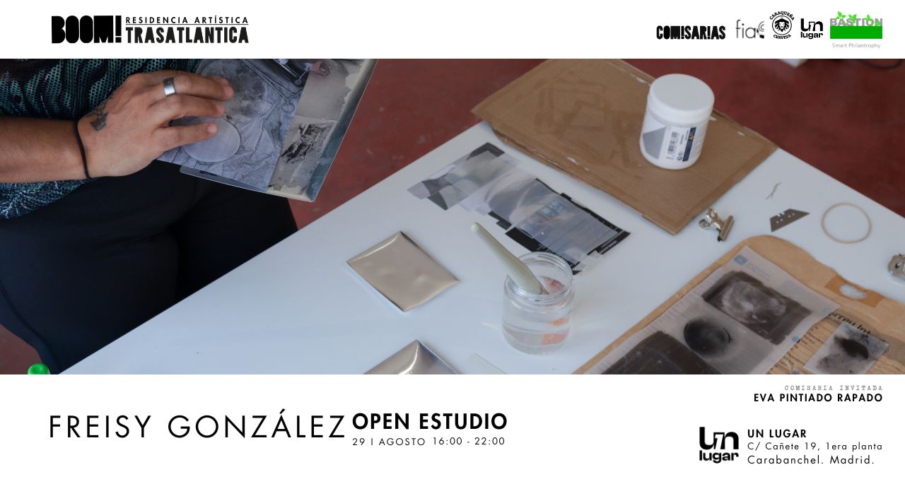 Desde 2021, la Residencia Trasatlántica establece un puente entre Latinoamérica y Madrid, ofreciendo a artistas emergentes un espacio de investigación y creación de 90 días. Este programa busca impulsar el intercambio cultural y favorecer el desarrollo de proyectos artísticos en un contexto de acompañamiento curatorial. Así se unen en aras dos de los programas que conforman los pilares de la filosofía simbiótica de Boom! Art Community: Residencia Trasatlántica y Comisarias.