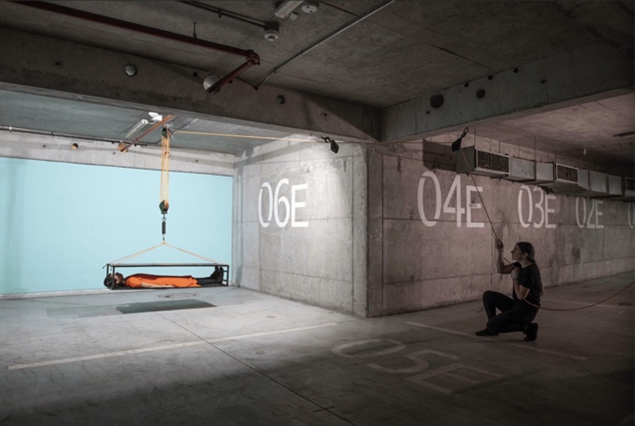 Este diálogo entre cuerpo y arquitectura, requiere de tensión dentro del espacio. Existen pruebas de ensayo y error constante para lograr completar el dibujo mental de la obra. Son acciones escultóricas que se desplazan del lugar habitual, se elevan del suelo a través del propio movimiento.