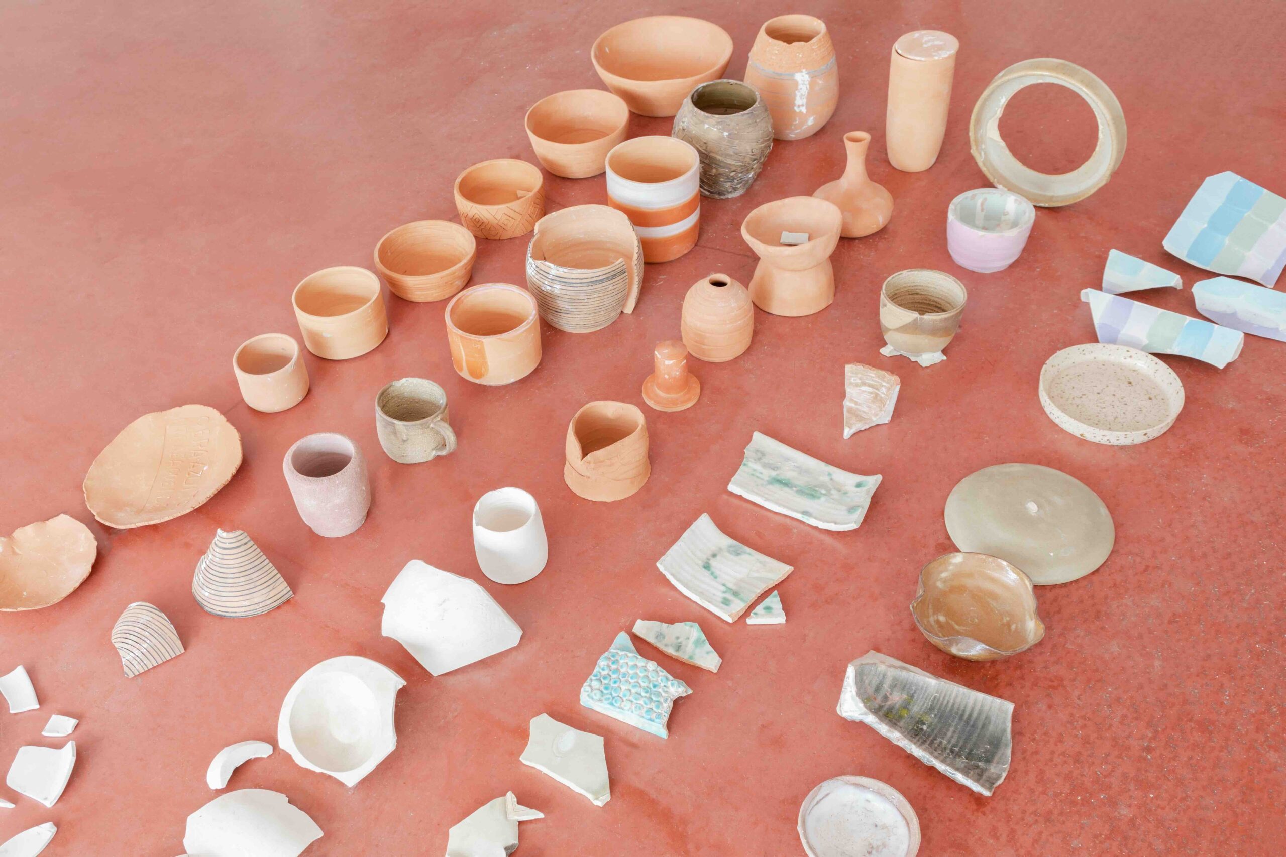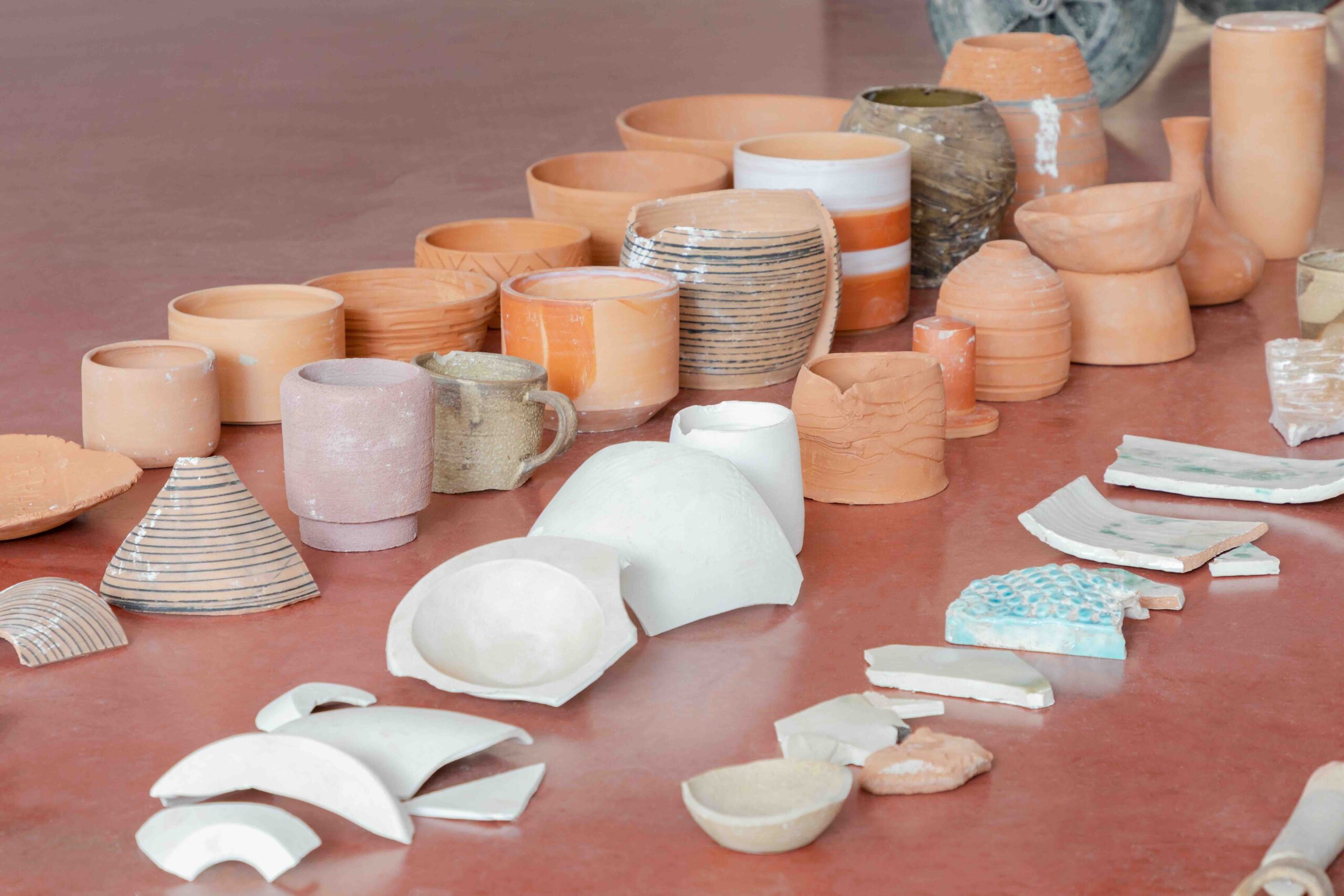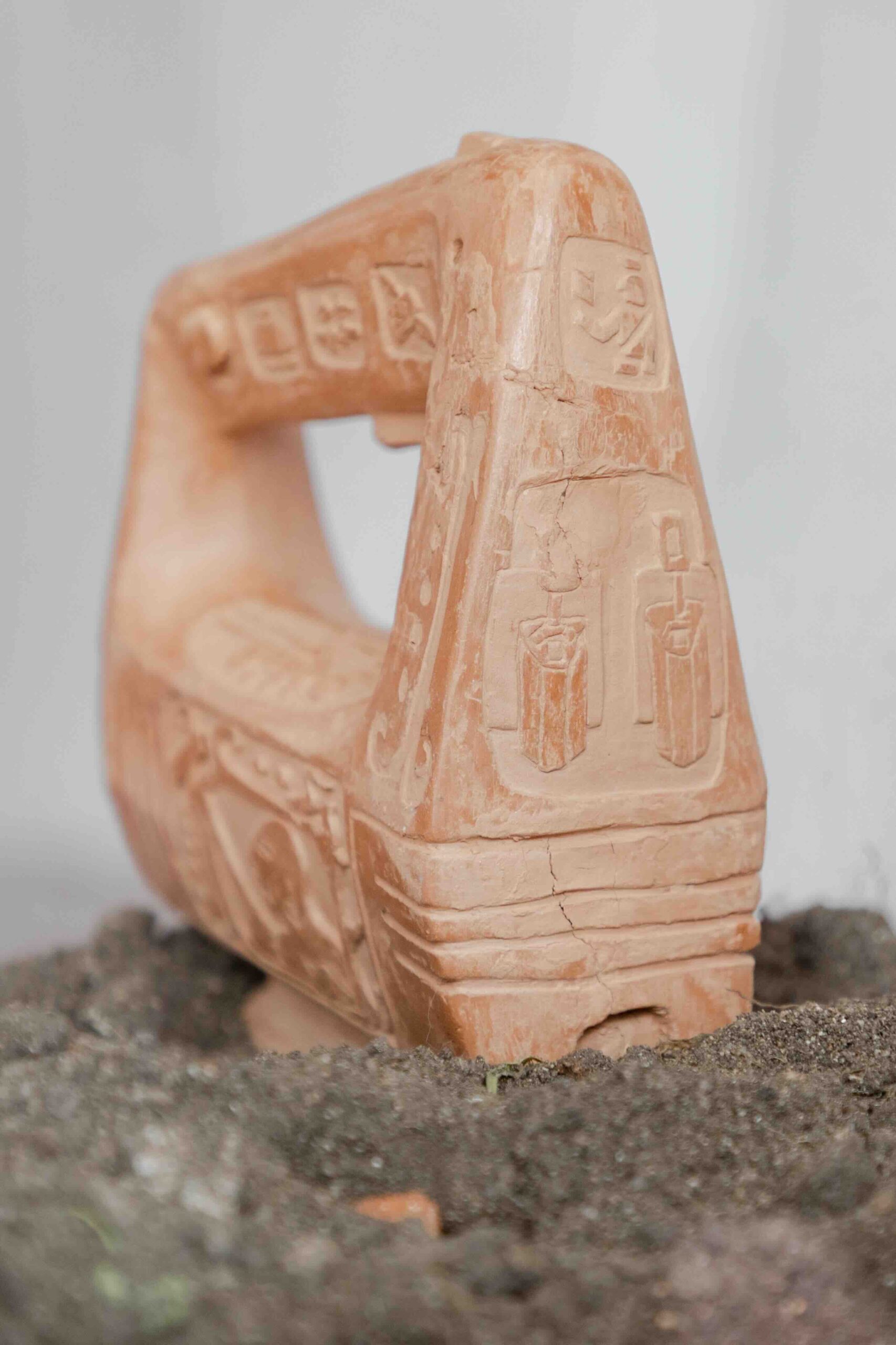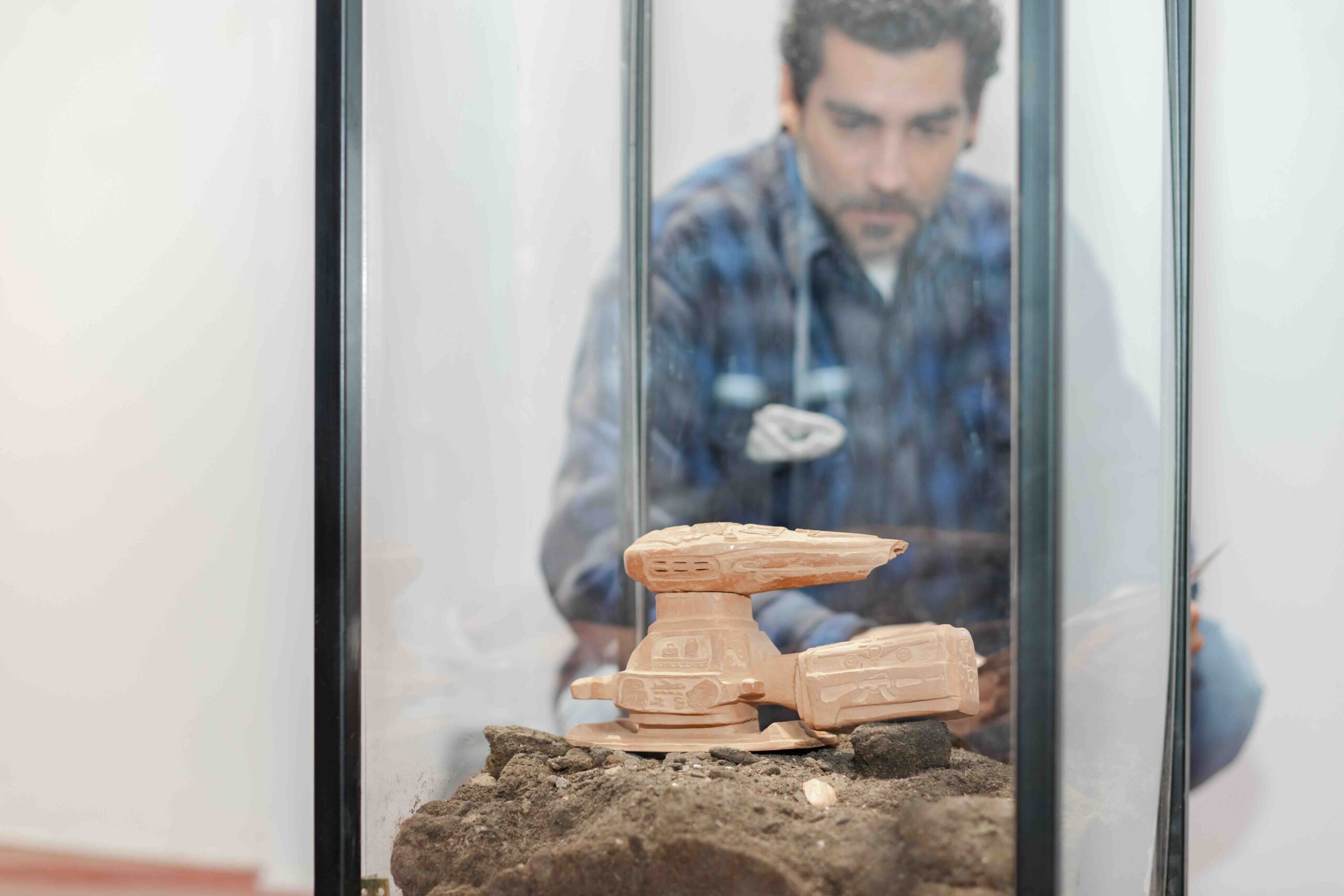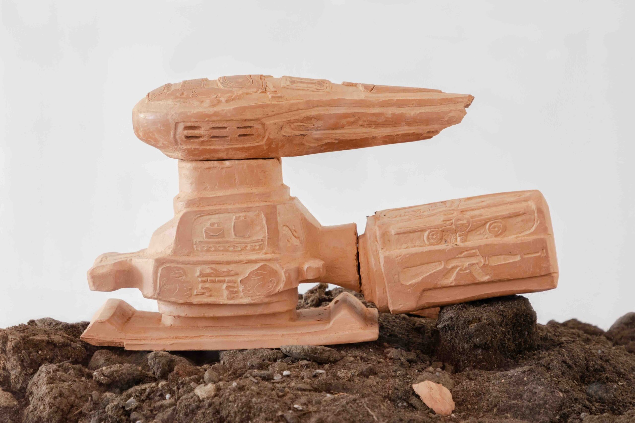 Las obras operan como preguntas materiales: la arcilla aparece no solo como soporte, sino como lenguaje ancestral, con una carga densa de memoria y resistencia. La tierra —literal y simbólica— deviene en archivo, testigo silente de un pasado colonial que sigue organizando el presente. Una hormigonera, instalada en el espacio expositivo, se transforma en escultura activa: en su rotación incesante parece amasar la historia de una ciudad edificada por cuerpos invisibilizados, por manos extranjeras que aún sostienen los cimientos de lo común. Y un neologismo creado por el propio artista conceptualiza el dolor sin nombre que afecta a todo migrante como dolencia colectiva, que atraviesa cuerpos, estructuras y tiempos: Migralgia.
