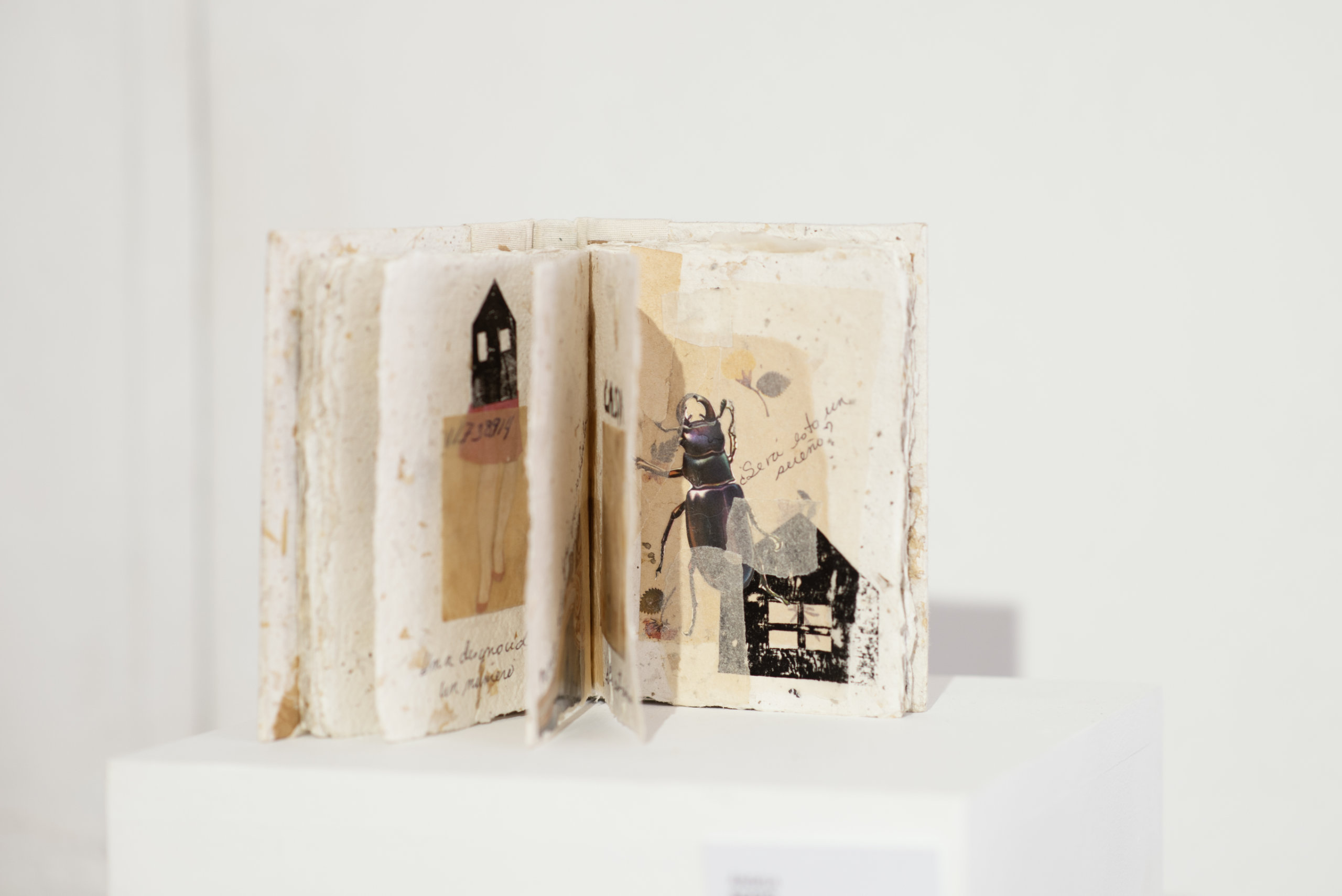Sin embargo, más allá del tránsito físico, esta exposición propone pensar la extranjería como una condición que permea lo afectivo, lo lingüístico, lo emocional y lo corporal. En este marco, el libro de artista emerge como un dispositivo especialmente fértil dentro de las tradiciones críticas del archivo y la materialidad impresa. No se trata aquí del libro como contenedor, sino como campo de operaciones: superficie de fricción, espacio de exploración y montaje, cuerpo intervenido.